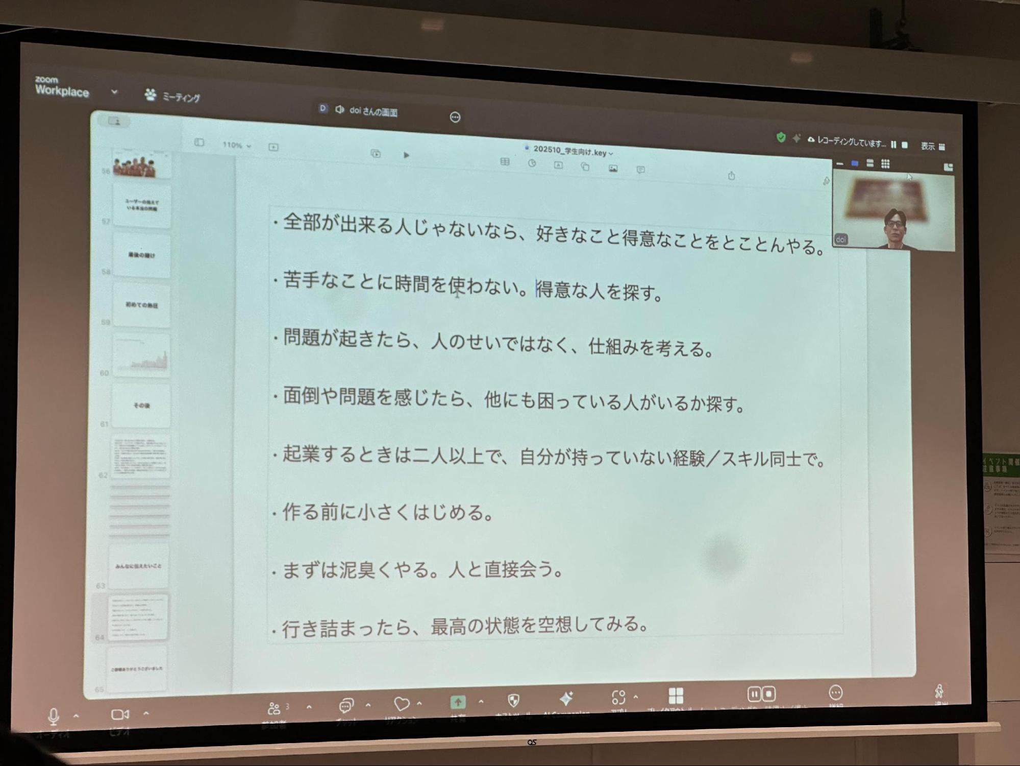 講師には、スポーツ映像分析サービスを提供する株式会社SPLYZA代表取締役・土井寛之氏を迎え、オンラインで講演を行いました。参加者は画面越しに、土井氏の経験や言葉に耳を傾け、「ワクワク」を原動力に生きることの大切さを学びました。